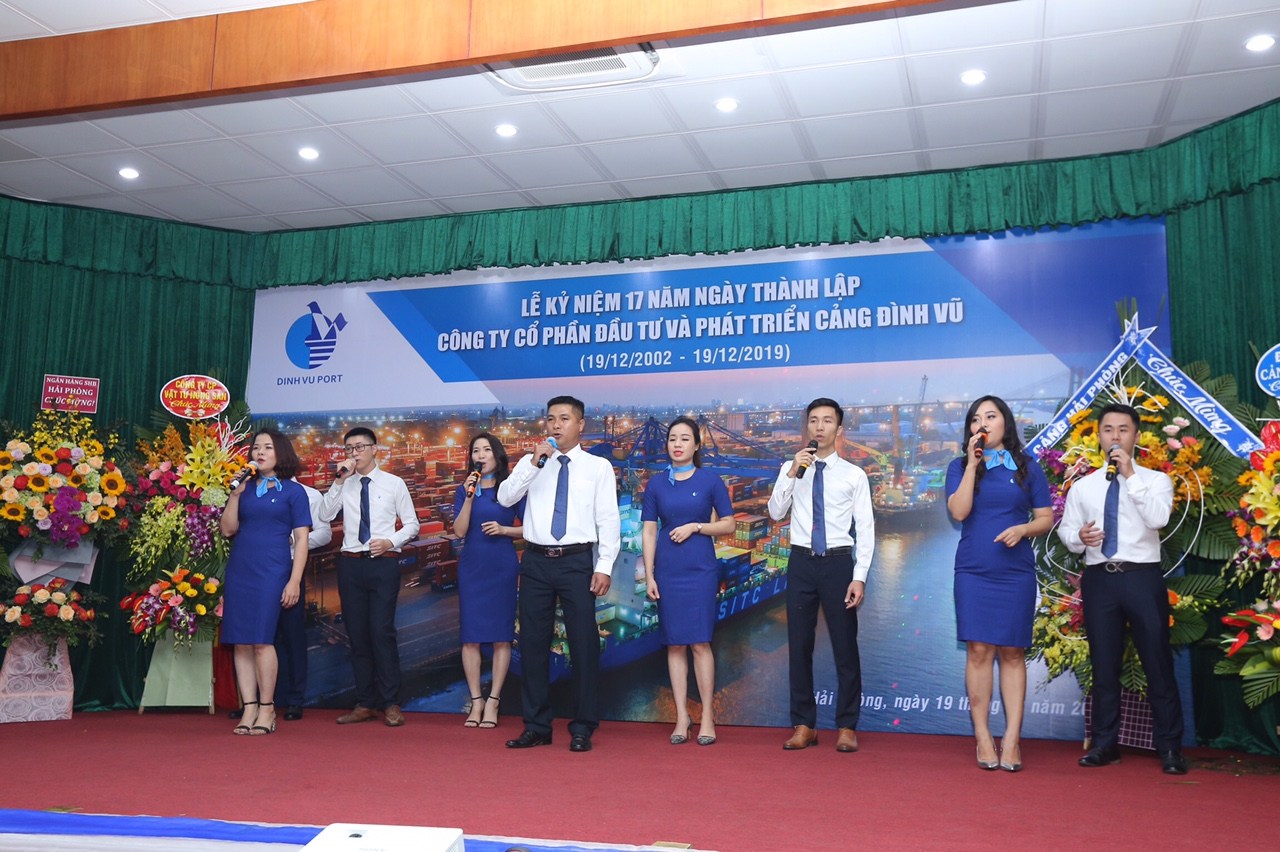 Sáng ngày 19/12/2019, Công ty Cổ phần Đầu tư và Phát triển Cảng Đình Vũ đã tổ chức Lễ kỷ niệm 17 năm ngày thành lập (19/12/2002-19/12/2019) tại Hội trường tầng 5 Văn phòng Công ty.