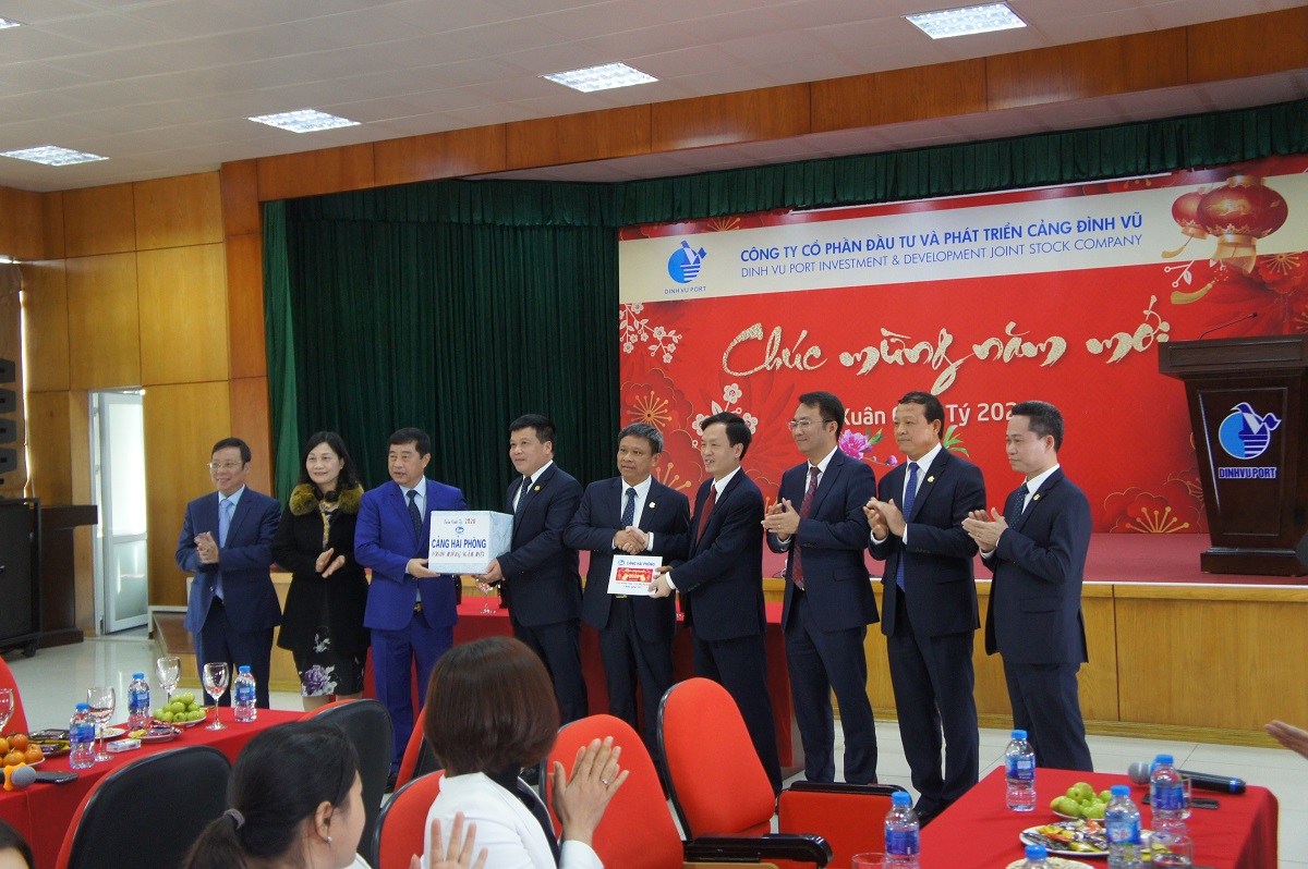 Tại Hội nghị, ban lãnh đạo Cảng Đình Vũ đã gửi lời chúc mừng năm mới cùng những món quà lì xì tài lộc tới toàn thể cán bộ nhân viên toàn Công ty. Ban lãnh đạo Công ty Cổ phần Cảng Hải Phòng cũng đã đến tham dự và trao tặng món quà chúc mừng năm mới tới Ban điều hành cùng đội ngũ nhân viên Cảng Đình Vũ.