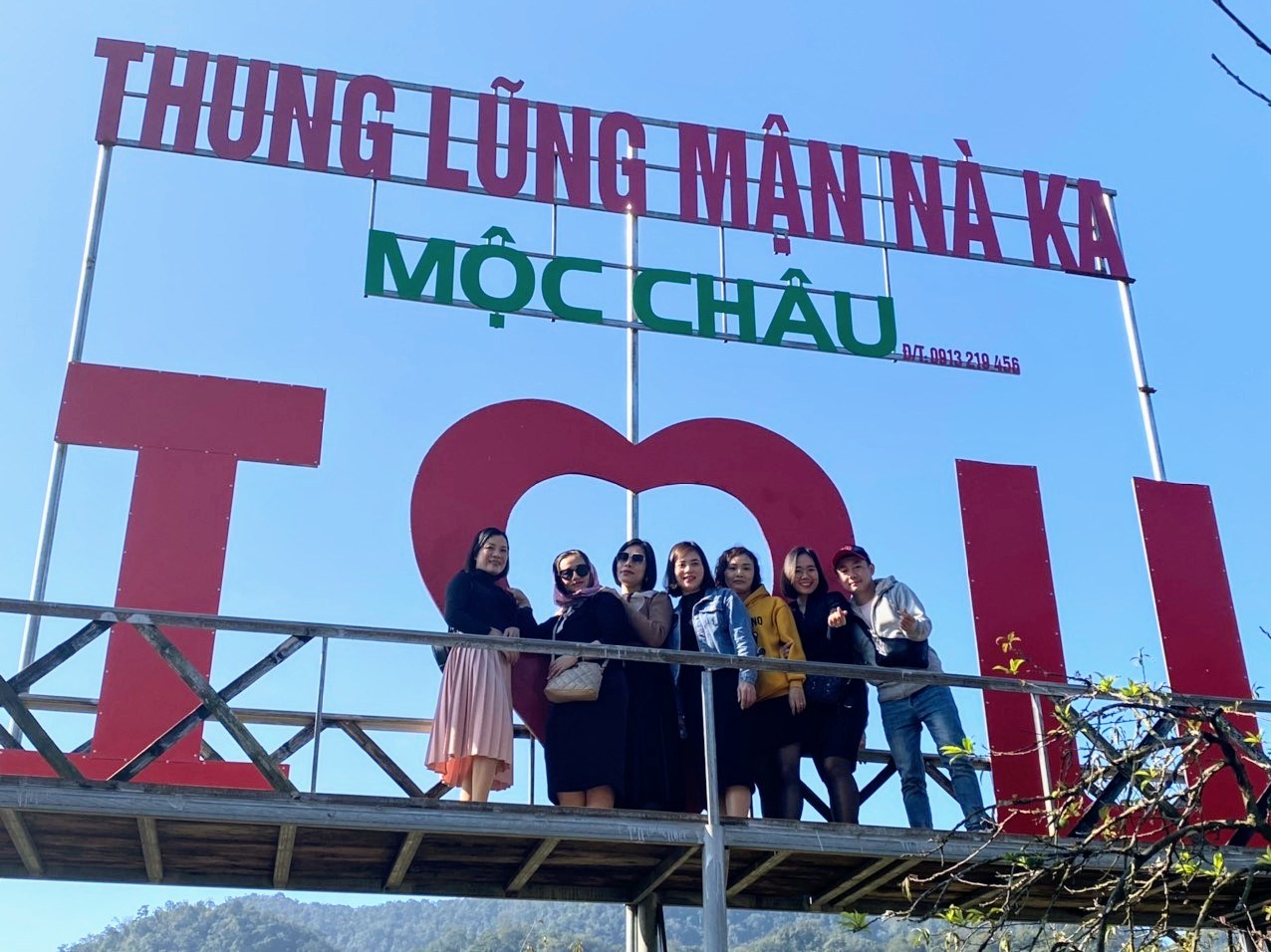 Trong khuôn khổ 2 ngày chương trình, các thành viên trong đoàn đã được tham quan các điểm du lịch nổi tiếng của thị trấn Mộc Châu – tỉnh Sơn La như Rừng thông Bản Áng, vườn hoa Happy Land, đồi chè trái tim, thung lũng mận Nà Ka và được thưởng thức các đặc sản nổi tiếng của địa phương.