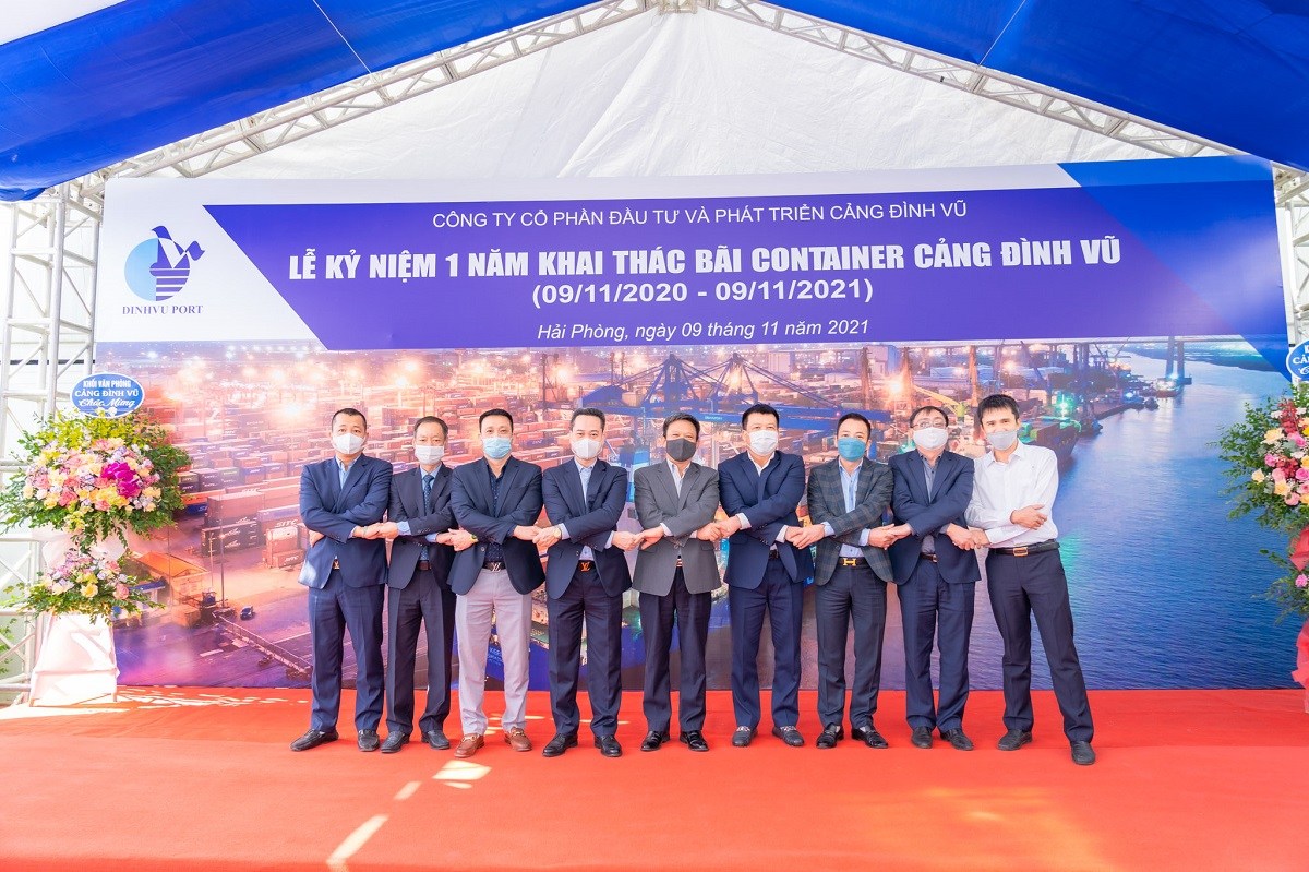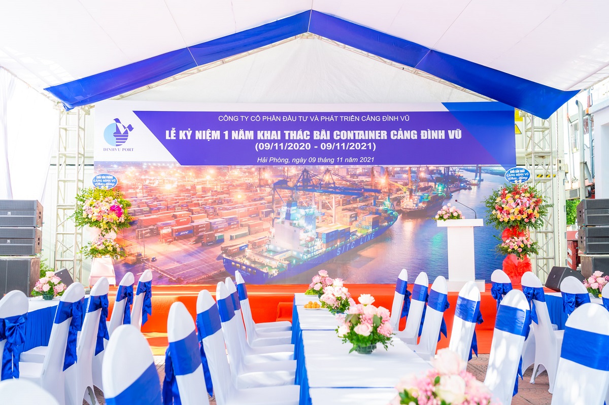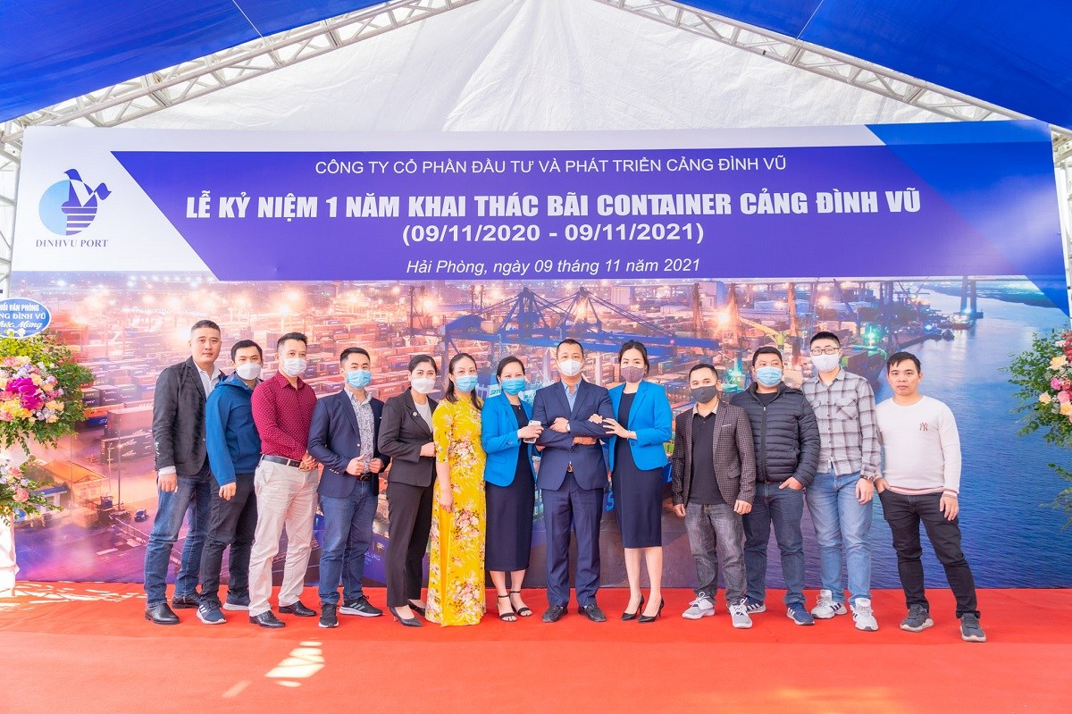 Chương trình lễ kỷ niệm 1 năm khai thác bãi container Cảng Đình Vũ được tổ chức ngắn gọn nhưng vẫn đảm bảo tính trang trọng và chuyên nghiệp thể hiện sự quan tâm rất lớn từ Ban điều hành, tập thể lãnh đạo Công ty dành cho đội ngũ công tác tại bãi. Chủ tịch Hội đồng quản trị Vũ Tuấn Dương đã trao hoa và quà cho tập thể phụ trách điều hành và nhân viên bãi container Cảng Đình Vũ. Không khí tiệc giao lưu vui vẻ trong tiết trời lạnh nhẹ đầu đông kết nối mọi người tham dự lại gần nhau hơn, đoàn kết hơn để cùng quyết tâm hoàn thành các chỉ tiêu quý 4 và cả năm 2021 cũng như giữ vững thành tích của Cảng Đình Vũ trong những năm sắp tới.