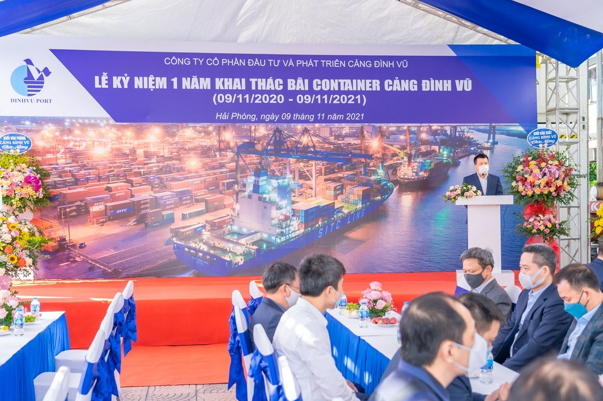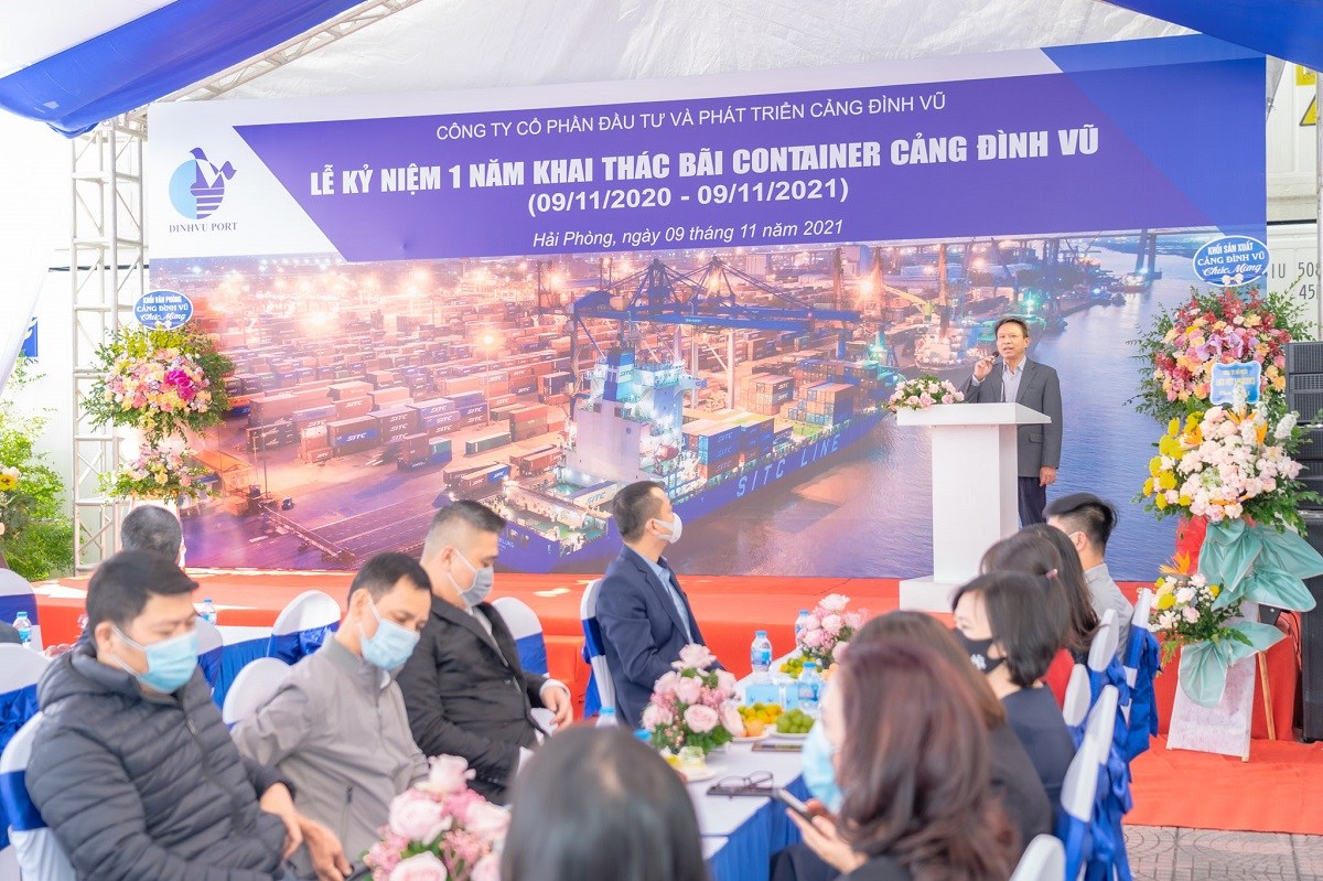 Phát biểu tại chương trình, Chủ tịch Hội đồng quản trị Vũ Tuấn Dương chúc mừng và tuyên dương những kết quả kinh doanh mà bãi container Cảng Đình Vũ đạt được sau năm đầu tiên hoạt động. Chủ tịch động viên tập thể phụ trách và nhân viên làm việc tại bãi sẽ không ngừng khắc phục khó khăn - vất vả, quyết tâm giữ vững chất lượng dịch vụ và đề cao sự điều hành khoa học, hợp lý để bãi container Cảng Đình Vũ xứng đáng là hậu phương vững chắc, phát triển các dịch vụ hậu cảng cho Công ty cổ phần Đầu tư và Phát triển Cảng Đinh Vũ.