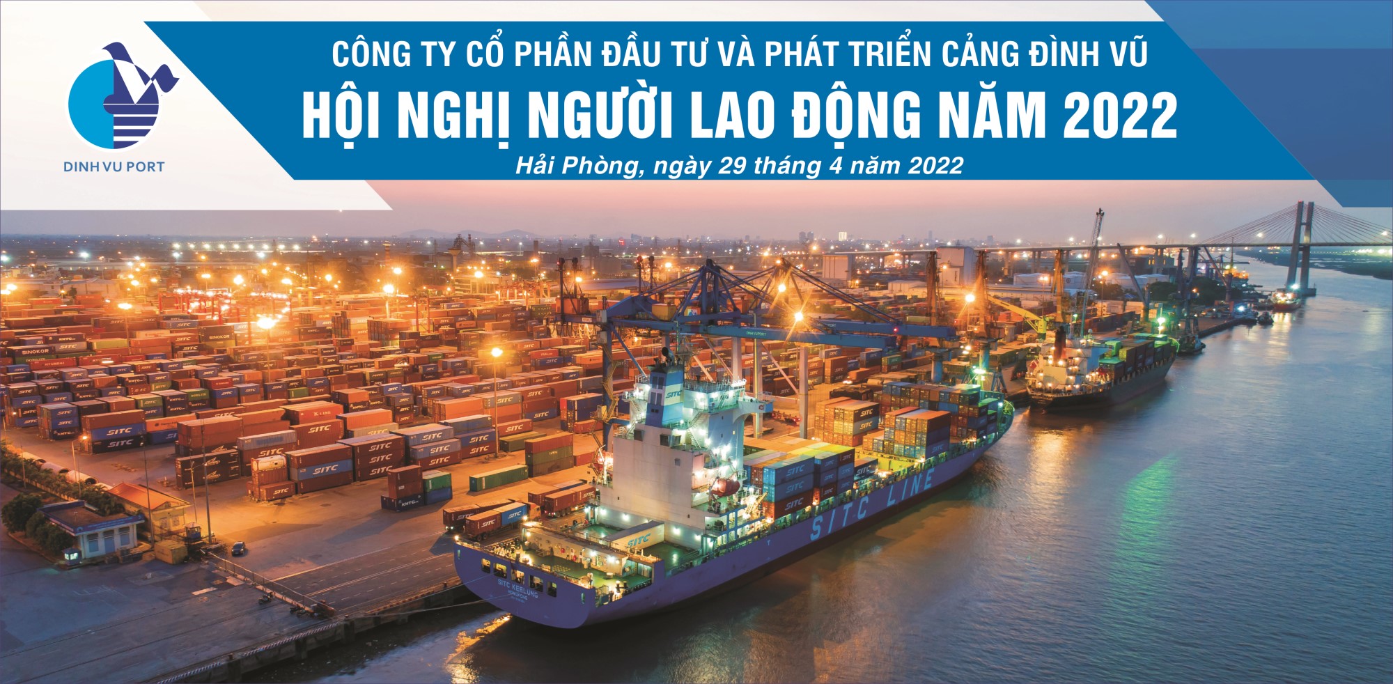 Sáng ngày 29/4/2022, Công ty Cổ phần Đầu tư và Phát triển Cảng Đình Vũ đã tổ chức Hội nghị người lao động năm 2022 tại Hội trường tầng 5 Công ty. Tham dự Hội nghị có tổng số 129 đại biểu đại diện cho tập thể lãnh đạo và CBCNV các đơn vị phòng, ban, tổ, đội trong Công ty.