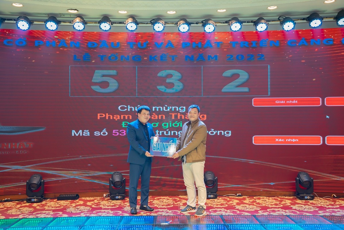 Tối ngày 06/01/2023, Công ty Cổ phần Đầu tư và Phát triển Cảng Đình Vũ đã tổ chức Lễ tổng kết và liên hoan tất niên năm 2022 tại Diamond Palace - Trung tâm tổ chức sự kiện Hải Đăng Plaza. Tham dự chương trình có sự hiện diện của các thành viên Hội đồng quản trị, Ban kiểm soát, Ban điều hành Công ty, lãnh đạo các phòng ban đơn vị cùng hơn 200 cán bộ nhân viên tiêu biểu.