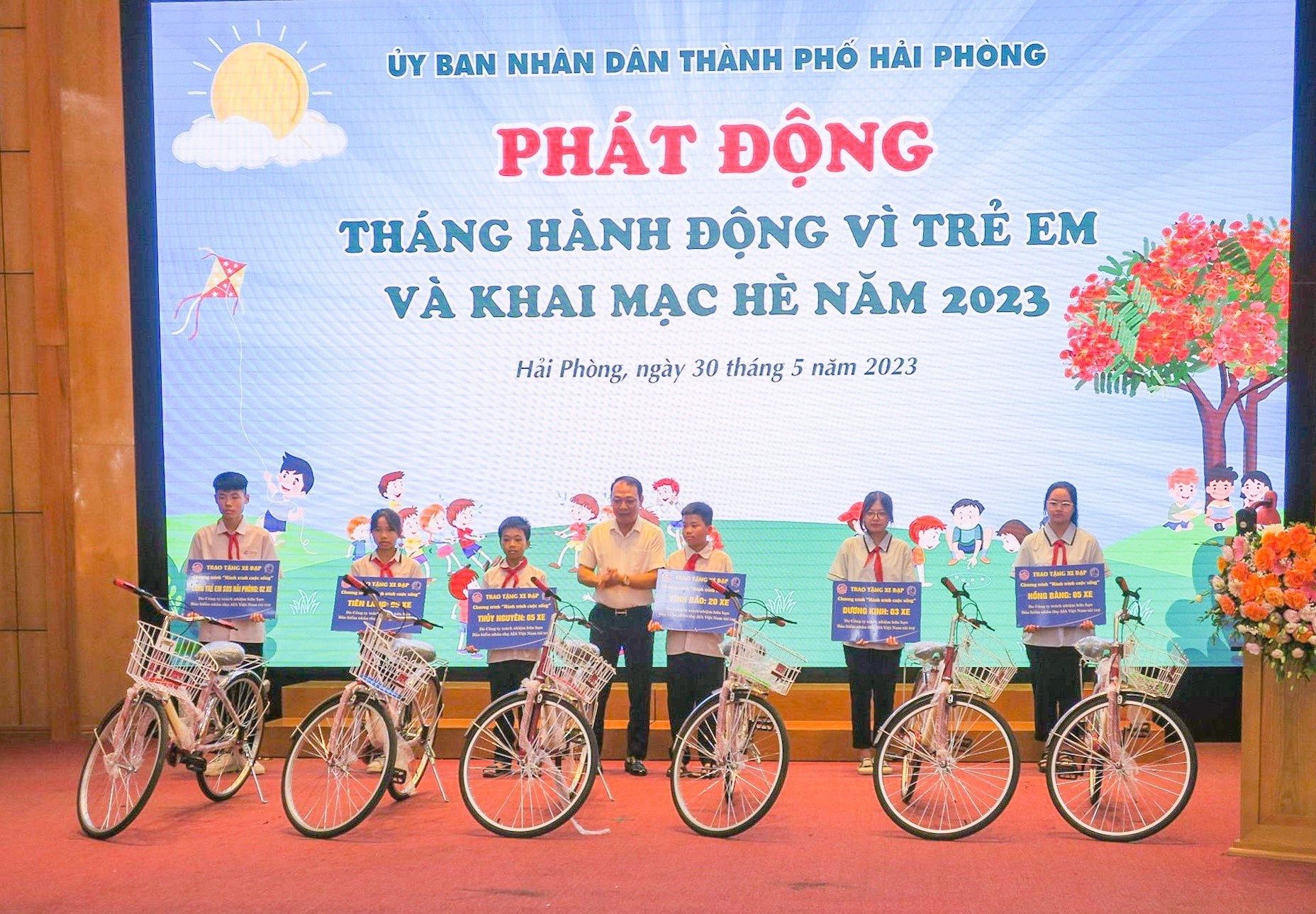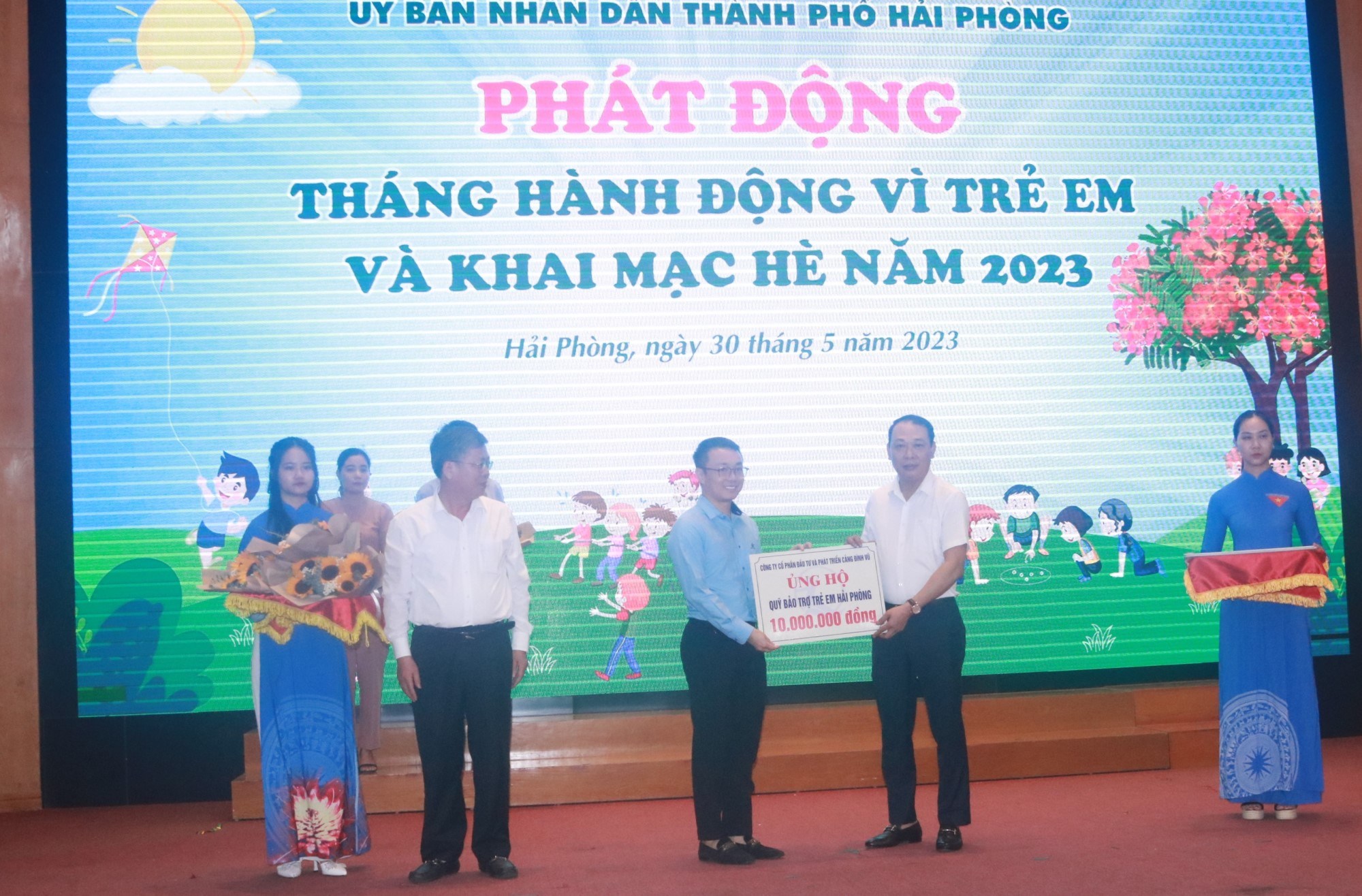 Cũng tại chương trình, Trung tâm CTXH và Quỹ Bảo trợ trẻ em Hải Phòng đã tiếp nhận ủng hộ Quỹ năm 2023; trong đó Cảng Đình Vũ tiếp tục đồng hành tài trợ cho quỹ 10 triệu đồng. Thông qua chương trình, các sở ban ngành cùng Quỹ Bảo trợ trẻ em Hải Phòng đã trao tặng 56 suất học bổng và 32 suất quà cho các em học sinh vượt khó vươn lên của quận Kiến An, trị giá hơn 80 triệu đồng. Thành đoàn và Sở Giáo dục - Đào tạo trao tặng 20 suất học bổng cho các em thiếu nhi tiêu biểu của quận Ngô Quyền và Kiến An; Quận Kiến An trao tặng 30 suất học bổng cho trẻ em có hoàn cảnh khó khăn của quận, mỗi suất gồm 1.000.000 đồng tiền mặt và 1 phần quà; Công ty TNHH Bảo hiểm Nhân thọ AIA tra 40 xe đạp cho các trẻ em có hoàn cảnh đặc biệt vươn lên cuộc sống.