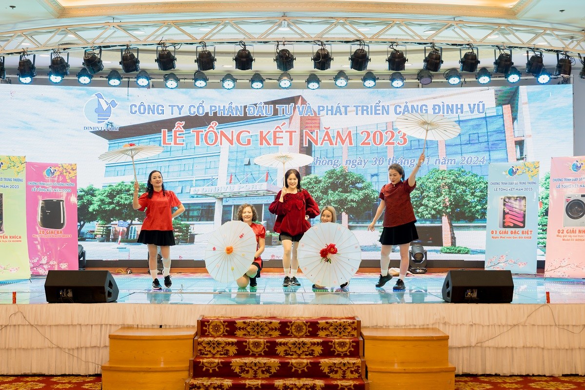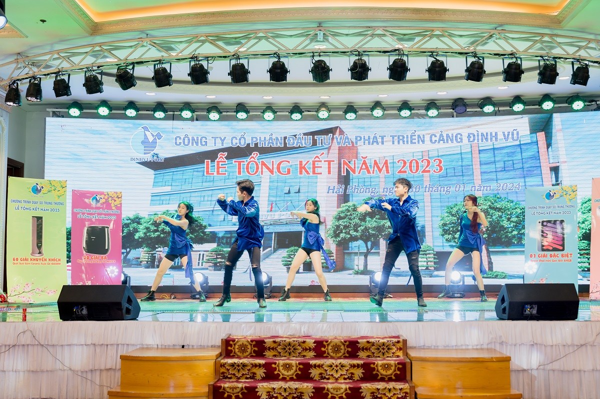 Tối ngày 30/01/2024, Công ty Cổ phần Đầu tư và Phát triển Cảng Đình Vũ tổ chức Lễ tổng kết và liên hoan tất niên năm 2023 tại Diamond Palace - Trung tâm tổ chức sự kiện Hải Đăng Plaza. Tham dự chương trình có sự hiện diện của các thành viên Hội đồng quản trị, Ban kiểm soát, Ban điều hành Công ty, lãnh đạo các phòng ban đơn vị cùng gần 250 cán bộ nhân viên tiêu biểu.
