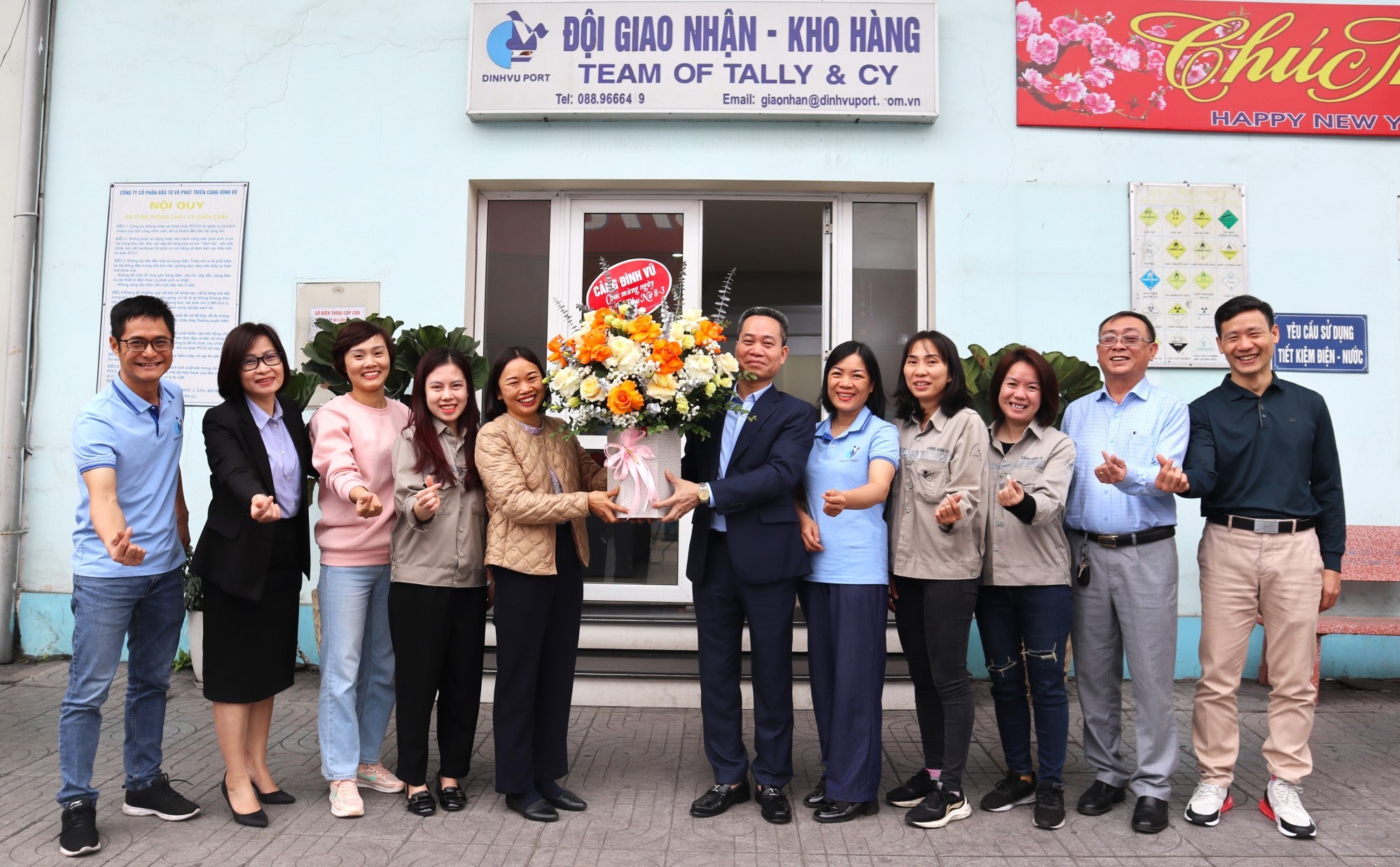 Trước đó vào ngày 07/3/2024, đại diện Ban lãnh đạo Công ty cùng các tổ chức đoàn thể Cảng Đình Vũ đã trao tặng những lẵng hoa tươi thắm, rực rỡ nhất cùng tình cảm và những lời chúc mừng tốt đẹp tới tập thể nữ nhân viên trong toàn Công ty.