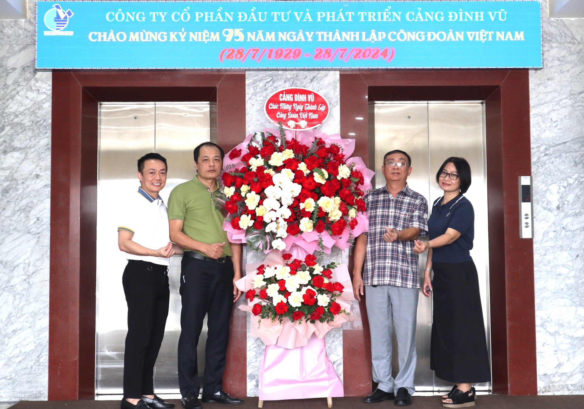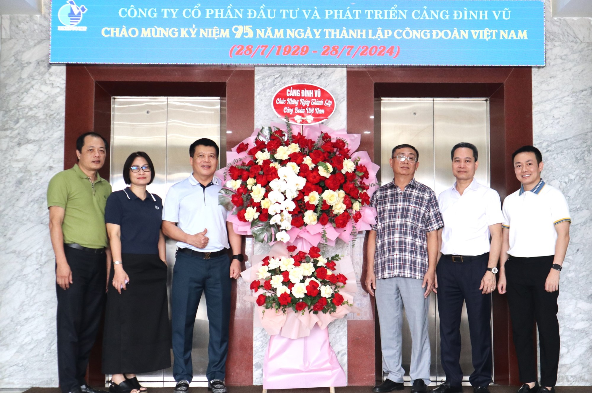 Cũng trong ngày 26/7/2024, Ban lãnh đạo Công ty đã tổ chức tặng hoa cho Ban chấp hành Công đoàn Công ty chúc mừng kỷ niệm 95 năm ngày thành lập Công đoàn Việt Nam (28/7/1929-28/7/2024). Hoạt động tặng hoa nhân dịp ngày thành lập các tổ chức đoàn thể như Đảng, Công đoàn, Đoàn thanh niên, Hội cựu chiến binh được duy trì thường niên tại Cảng Đình Vũ là một hình thức động viên, khích lệ sự đóng góp của các tổ chức đối với sự phát triển chung của toàn Công ty. Ban lãnh đạo ghi nhận sự đồng hành của Công đoàn Cảng Đình Vũ trong việc bảo vệ quyền và lợi ích của người lao động, hi vọng trong năm 2024 và giai đoạn tới Công đoàn Cảng Đình Vũ sẽ triển khai được nhiều phong trào, hoạt động bổ ích quy tụ sự tham gia của đông đảo CBCNV Công ty.