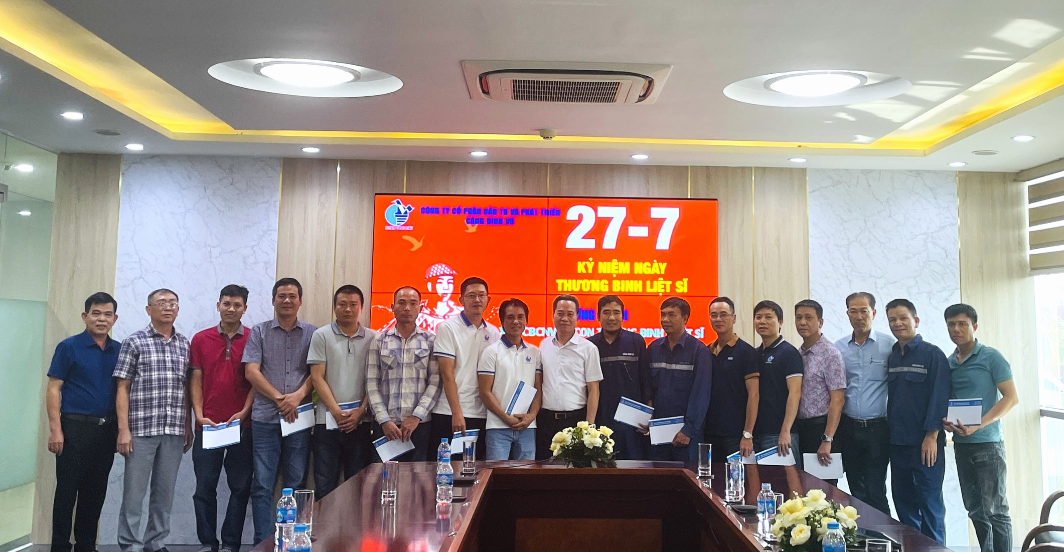 Sáng ngày 26/7/2024, Cảng Đình Vũ tổ chức tiếp xúc tri ân CBCNV là con thương binh - liệt sĩ nhân dịp kỷ niệm 77 năm ngày Thương binh-Liệt sĩ Việt Nam (27/7/1947-27/7/2024). Các thành viên ban lãnh đạo Công ty, đại diện BCH Đảng ủy, Chủ tịch Công đoàn, Chủ tịch Hội Cựu chiến binh Công ty cùng tham dự tặng quà.