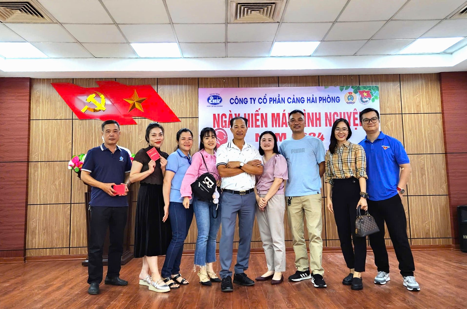 Căn cứ Kế hoạch số 3399/KH-CHP ngày 03/10/2024 của Công ty CP Cảng Hải Phòng, sau khi được và chỉ đạo và chấp thuận của Tổng giám đốc, BCH Đoàn thanh niên Cảng Đình Vũ đã vận động được 44 Cán bộ nhân viên, đoàn viên thanh niên đăng ký tham gia “Ngày hội hiến máu tình nguyện năm 2024” vào sáng ngày 15/10/2024 tại Cảng Hải Phòng.