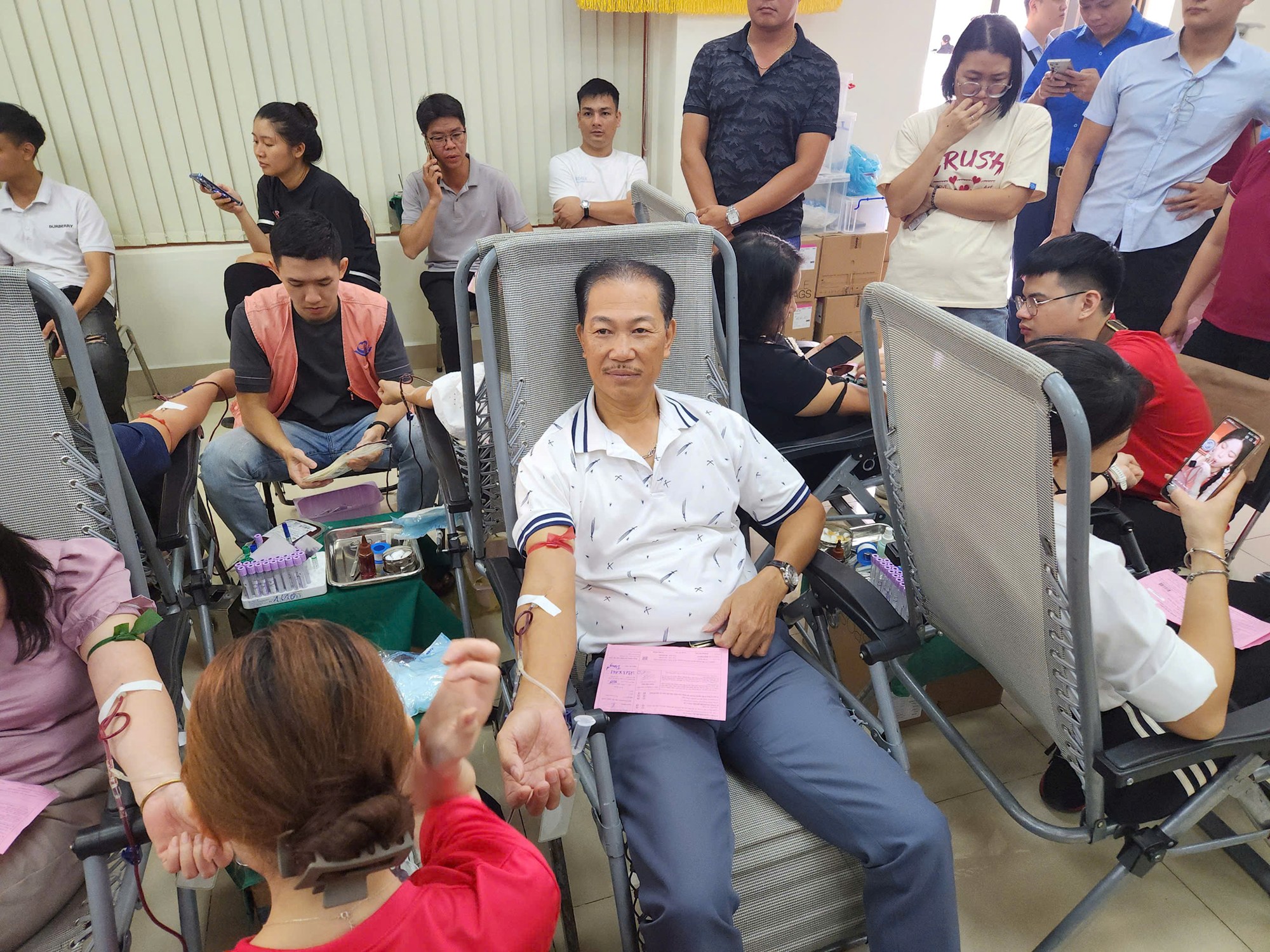 Người tham gia hiến máu được kiểm tra và tư vấn về sức khỏe trước khi lấy máu