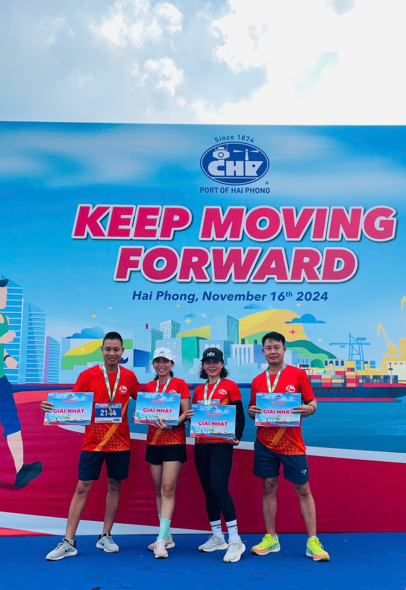 Kết thúc 2 lượt chạy dành cho VĐV nữ và VĐV nam, CBCNV Cảng Đình Vũ đã đạt được thành tích vượt trội với 04 Giải Nhất (2 giải nhất bảng VĐV nam thuộc về 2 anh em ruột đến từ Đội Bốc xếp: Phạm Đức Thông & Phạm Đức Thạo; 2 giải nhất bảng VĐV nữ thuộc về Ngô Thị Ngọc Duyên – Đội GNKH & Hoàng Ngọc Hà – Phòng Kỹ thuật); 04 Giải Nhì (3VĐV nam: Nguyễn Đăng Tiến & Trần Văn Trưởng – Đội Bốc xếp; Đàm Trung Hiếu – Đội Cơ giới & 01 VĐV nữ Nguyễn Thị Dương – Đội GNKH), 03 Giải Ba (02 VĐV nam: Phạm Tuấn Anh – Phòng Kỹ thuật & Đỗ Văn Huy – Đội Cơ giới; 01 VĐV nữ Nguyễn Thị Thu Huyền – Đội GNKH ) và 03 Giải Khuyến khích.