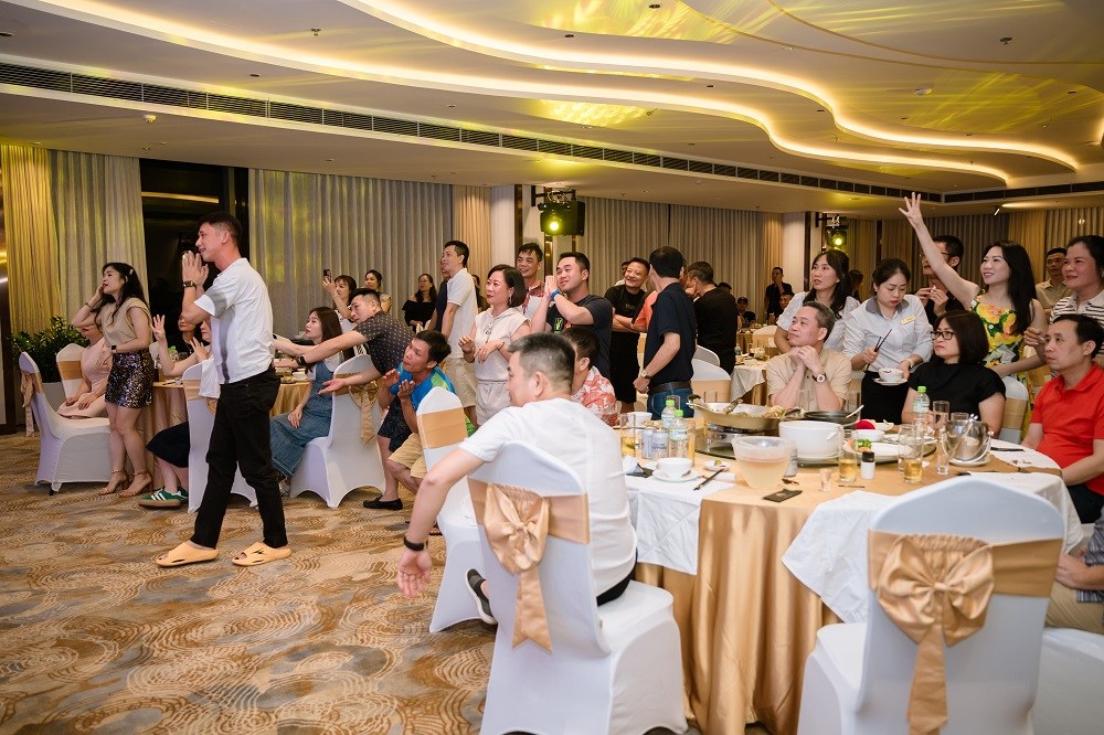 Đến với gala dinner chủ đề “Chắp cánh vươn xa – Thăng hoa cảm xúc”, chỉ với 2 trò chơi đơn giản là Hiểu ý đồng đội và Nối từ, toàn bộ khán phòng đã bị rung chuyển bởi những tràng cười không ngớt và vô vàn biểu cảm hài hước của các thành viên tham gia. Các ca sĩ, MC, cùng vũ đoàn xinh đẹp đã tiếp thêm nguồn năng lượng tích cực cho chương trình với những ca khúc sôi động và không khí gắn kết tuyệt vời.