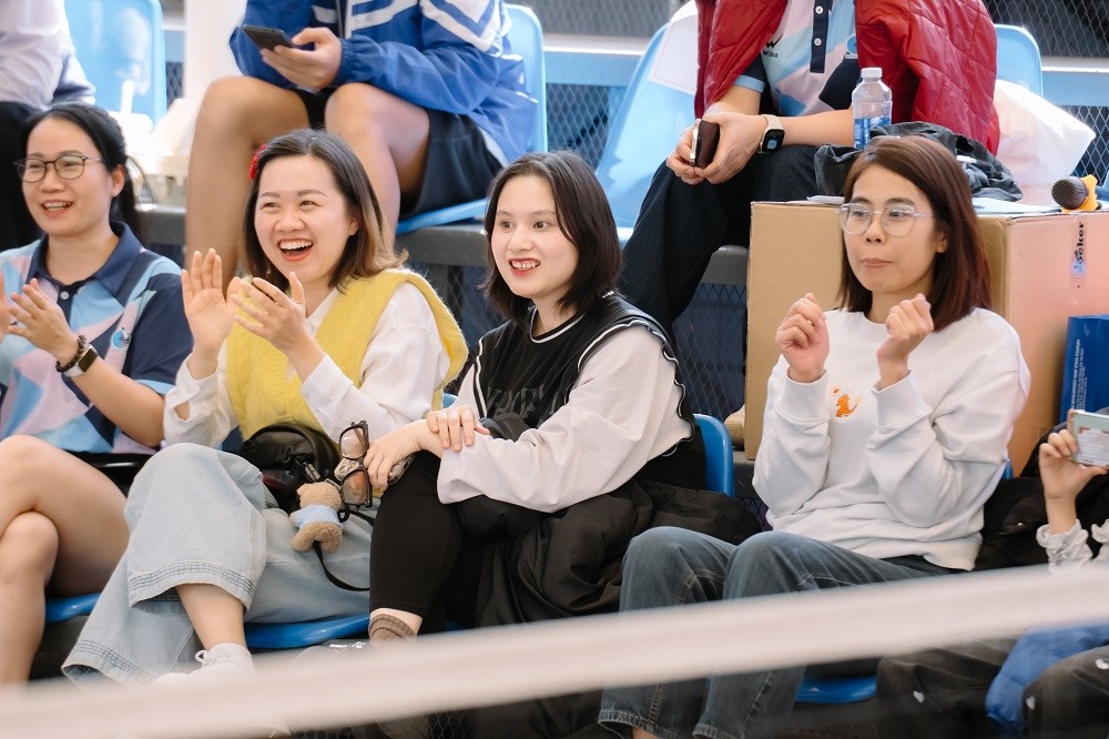 Các VĐV hào hứng tham gia tiết mục khởi động