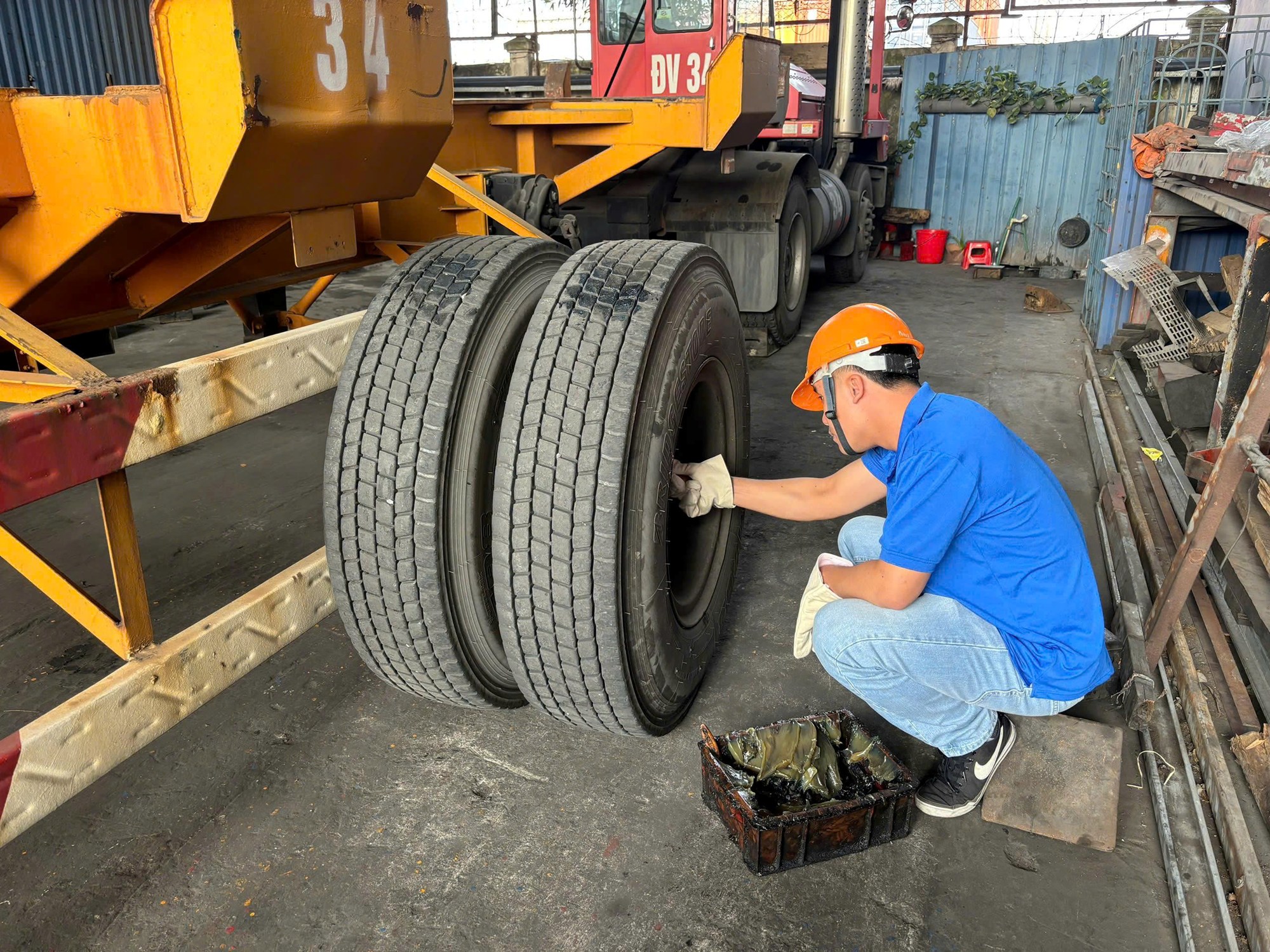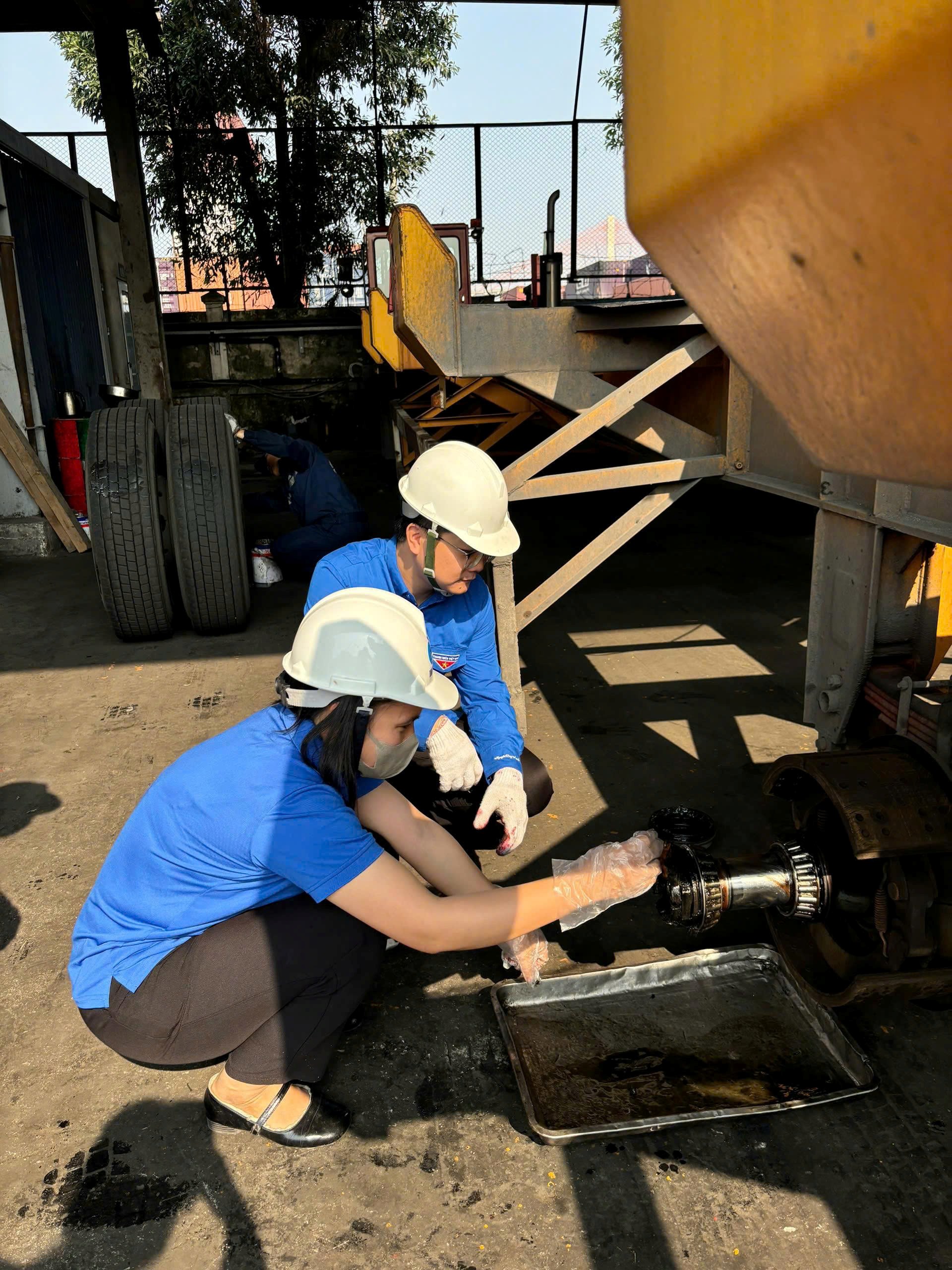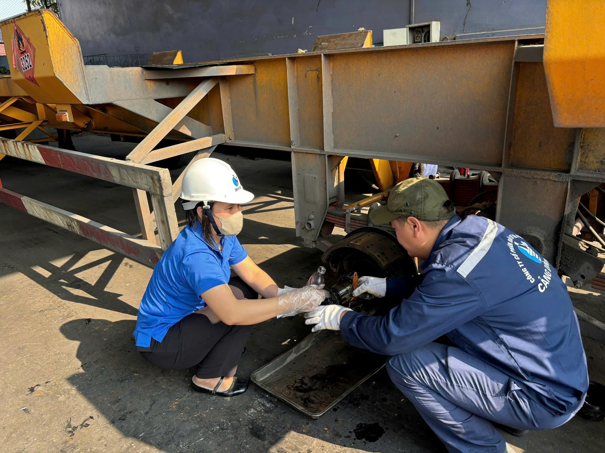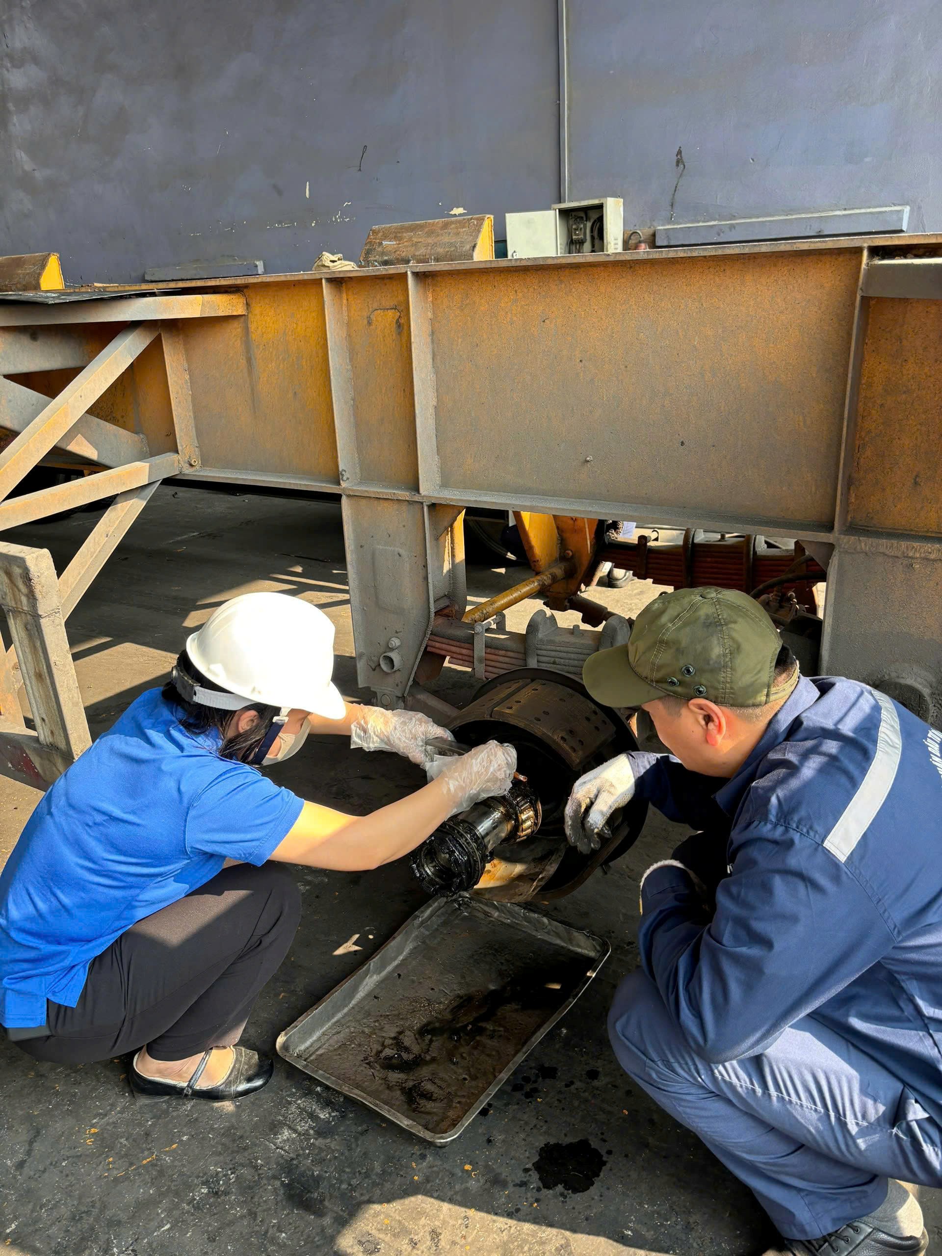 Trong ngày 13/3/2026, với tinh thần trách nhiệm cao và sự phân công nhiệm vụ khoa học, 06 đoàn viên thanh niên Công ty đã triển khai thực hiện công trình và hoàn thành khối lượng công việc đề ra: bảo dưỡng hệ thống moay ơ đầu kéo và rơ-mooc xe vận chuyển mang số hiệu DV34.