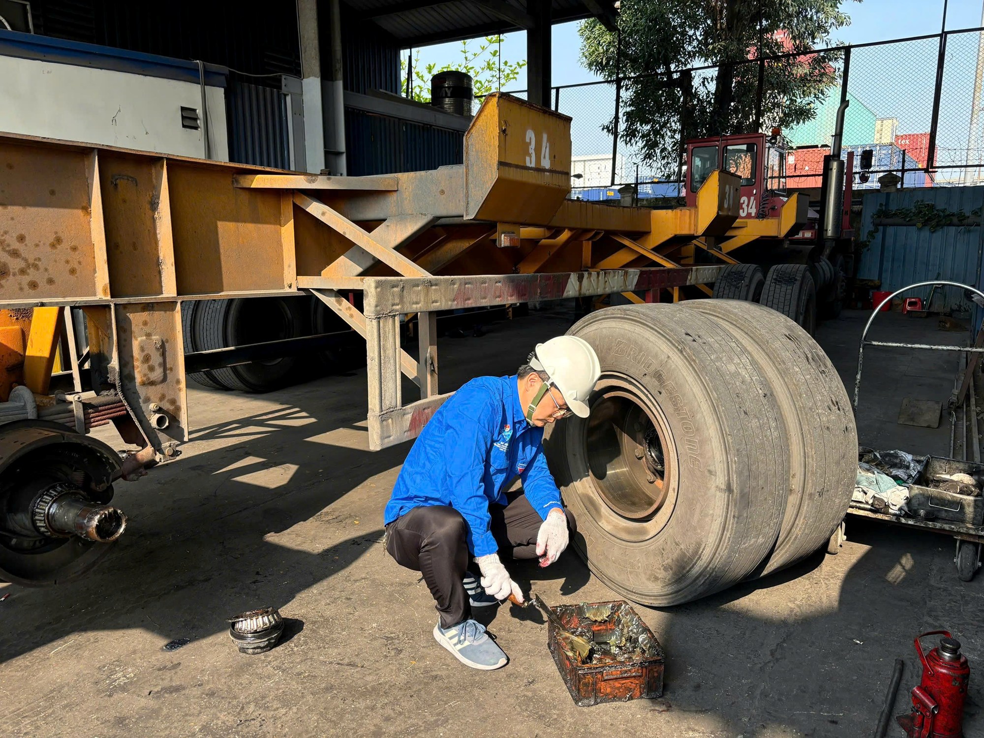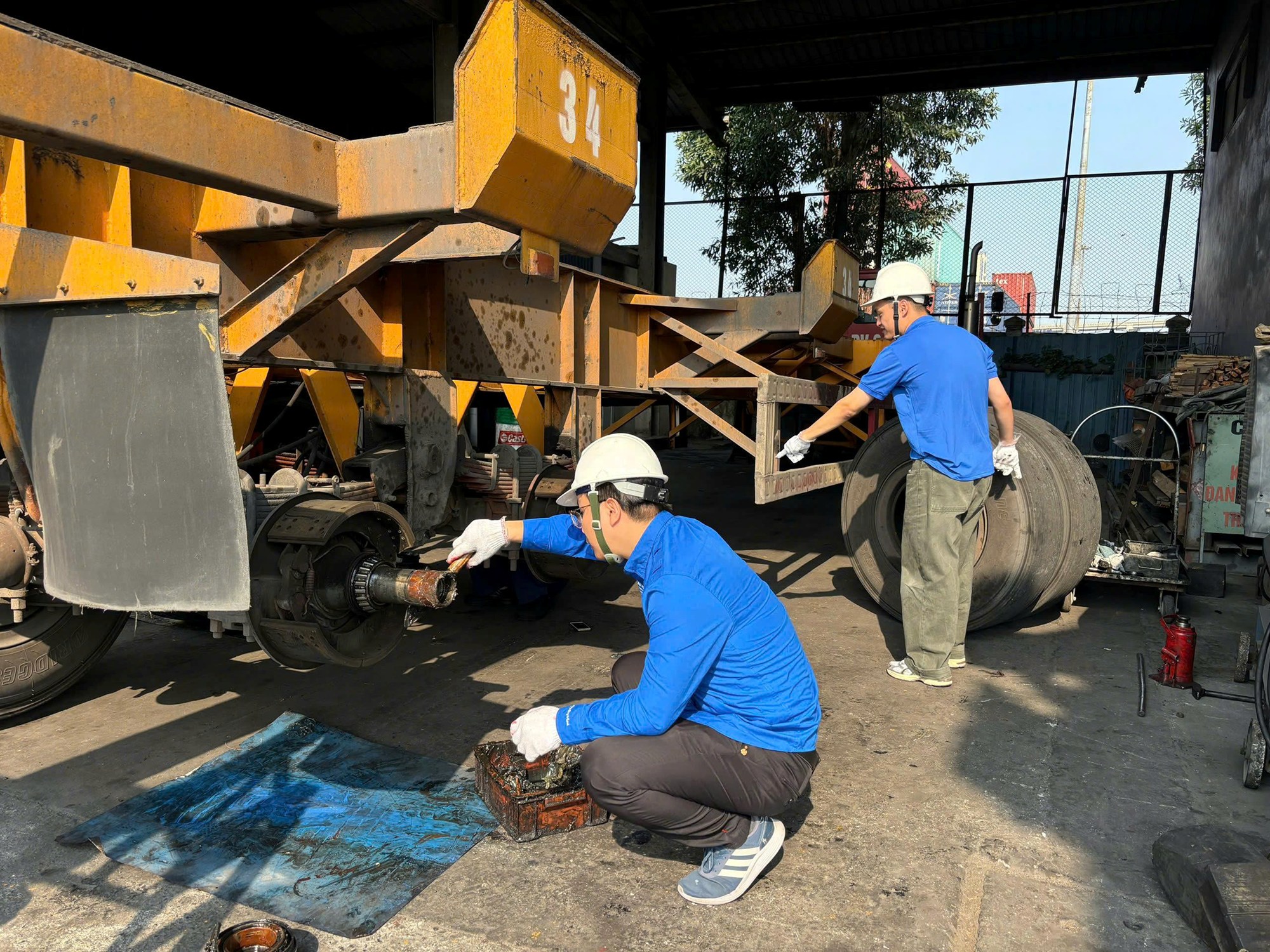 Chào mừng 95 năm ngày thành lập Đoàn TNCS Hồ Chí Minh (26/3/1931-26/3/2026), Đoàn thanh niên Cảng Đình Vũ đã đăng ký đảm nhận công trình “Bảo dưỡng hệ thống moay ơ đầu kéo, rơ mooc xe vận chuyển”.