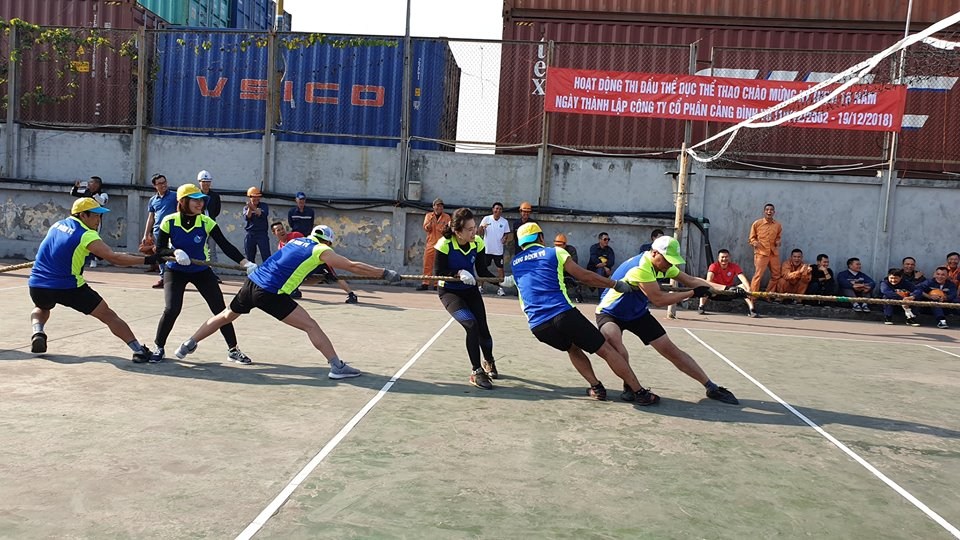 Trong khuôn khổ hoạt động, có 2 môn thể thao được tổ chức là Kéo co và Bóng chuyền. Với môn Kéo co, có 4 đội thi đăng ký tham gia: 2 đội liên quân Bốc xếp-Giao nhận kho hàng; 1 đội liên quân Cơ giới-Tổ chức Tiền lương và 1 đội liên quân Văn phòng. Môn Bóng chuyền là màn thi đấu giao hữu 5 hiệp giữa 2 đội Bốc xếp và Cơ giới. Ban tổ chức đã trang bị cho các đội thi những bộ quần áo đồng phục thi đấu với màu sắc riêng biệt có in logo của Cảng Đình Vũ tạo nên hình ảnh của một giải đấu vô cùng chuyên nghiệp và ấn tượng.