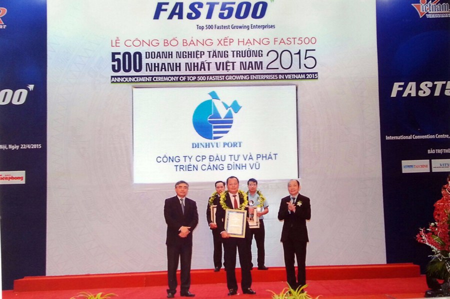 Thg4 23 Cảng Đình vũ lọp vào Top 50 Doanh nghiệp tăng trưởng xuất sắc nhất Dinh Vu Port Tin công ty 23 Tháng Tư 2015 Hôm qua, ngày 22/4/2015, tại Trung tâm Hội nghị Quốc tế, Hà Nội, Công ty cổ phần Báo cáo đánh giá Việt Nam kết hợp cùng Báo VietnamNet – Bộ Thông tin Truyền thông chính thức tổ chức Lễ công bố Bảng xếp hạng FAST500 – Top 500 doanh nghiệp tăng trưởng nhanh nhất Việt Nam năm 2015. Xem chi tiết